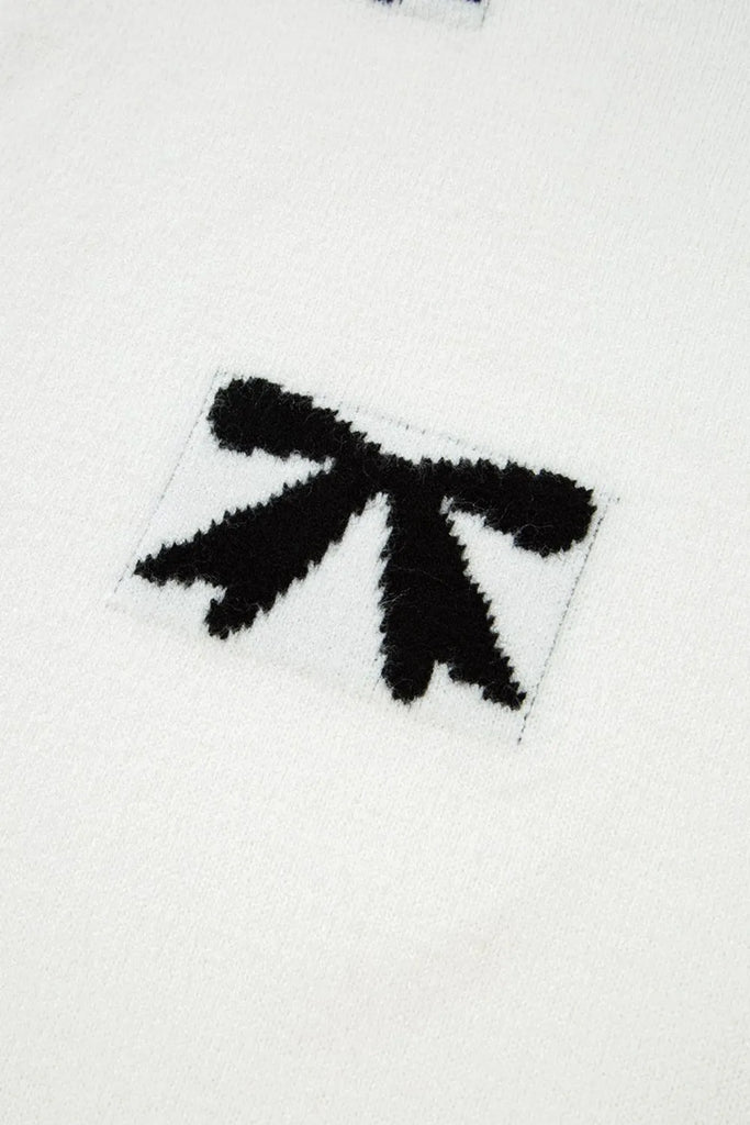 Bow Pattern Knit Short Sleeve Sweater